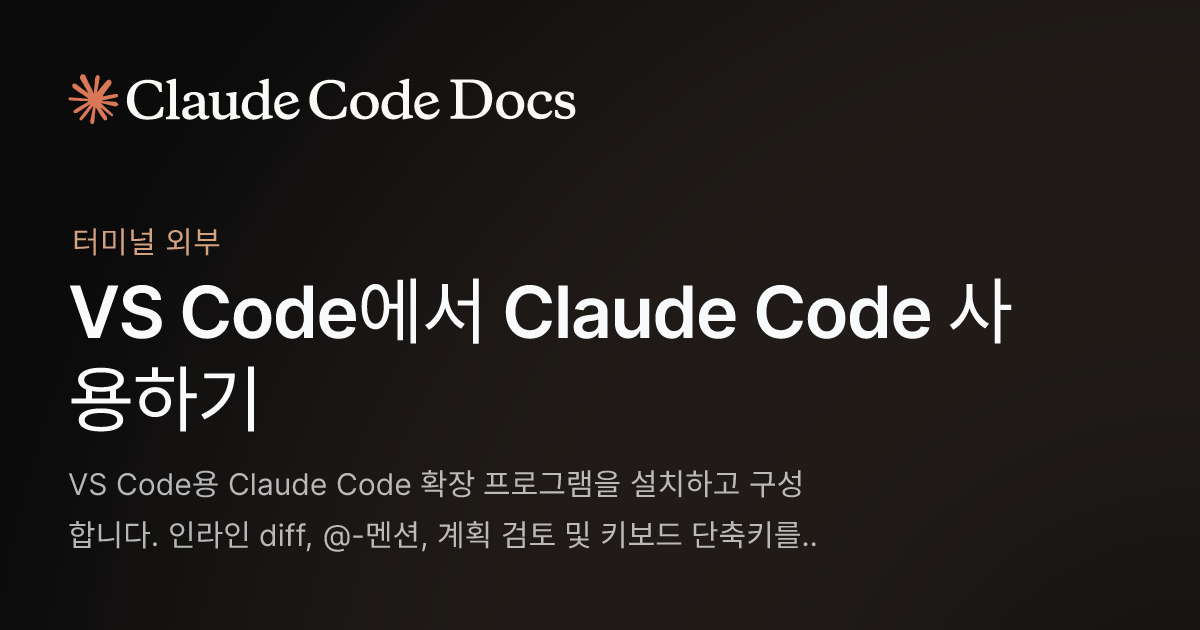 @파일명으로 특정 파일 멘션터미널에서 claude 명령어를 치면 확장이 자동으로 연동돼요. 터미널 기반 CLI와 VS Code UI 중 편한 걸 선택하면 됩니다. 저도 뷰어 기능이 좋아서 VS Code 익스텐션으로 클로드 코드를 사용하고 있어요.