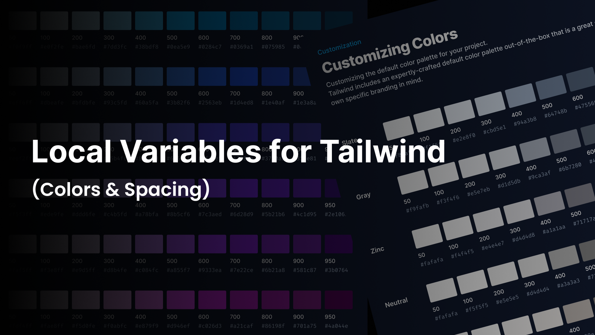 A set of Figma local variables based on Tailwind CSS default styles, including colors, spacing, breakpoints, font sizes, and border radii.
